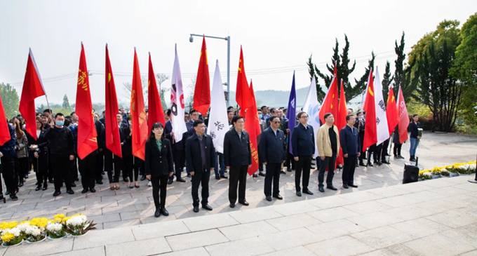 為緬懷革命先烈,傳承紅色基因,進(jìn)一步推動黨史學(xué)習(xí)教育深入人心,4月13日上午,蘇豪控股集團(tuán)黨委在江寧橫山烈士紀(jì)念碑開展憑吊活動。集團(tuán)黨委班子成員、二級公司班子成員、支部書記、黨務(wù)工作者、黨員代表、團(tuán)員代表、工會代表及總部黨員代表共179人參加。上午9時,活動正式開始,全體黨員整齊列隊革命烈士紀(jì)念碑前。兩名黨員代表將集團(tuán)黨委敬獻(xiàn)的花籃擺放至紀(jì)念碑前,集團(tuán)黨委書記、董事長王正喜代表全體黨員鄭重整理挽聯(lián)。全體黨員向為民族解放而英勇獻(xiàn)身的革命烈士三鞠躬,沉痛默哀。在莊嚴(yán)肅穆的紀(jì)念碑前,集團(tuán)黨委副書記姚蓓帶領(lǐng)在場黨